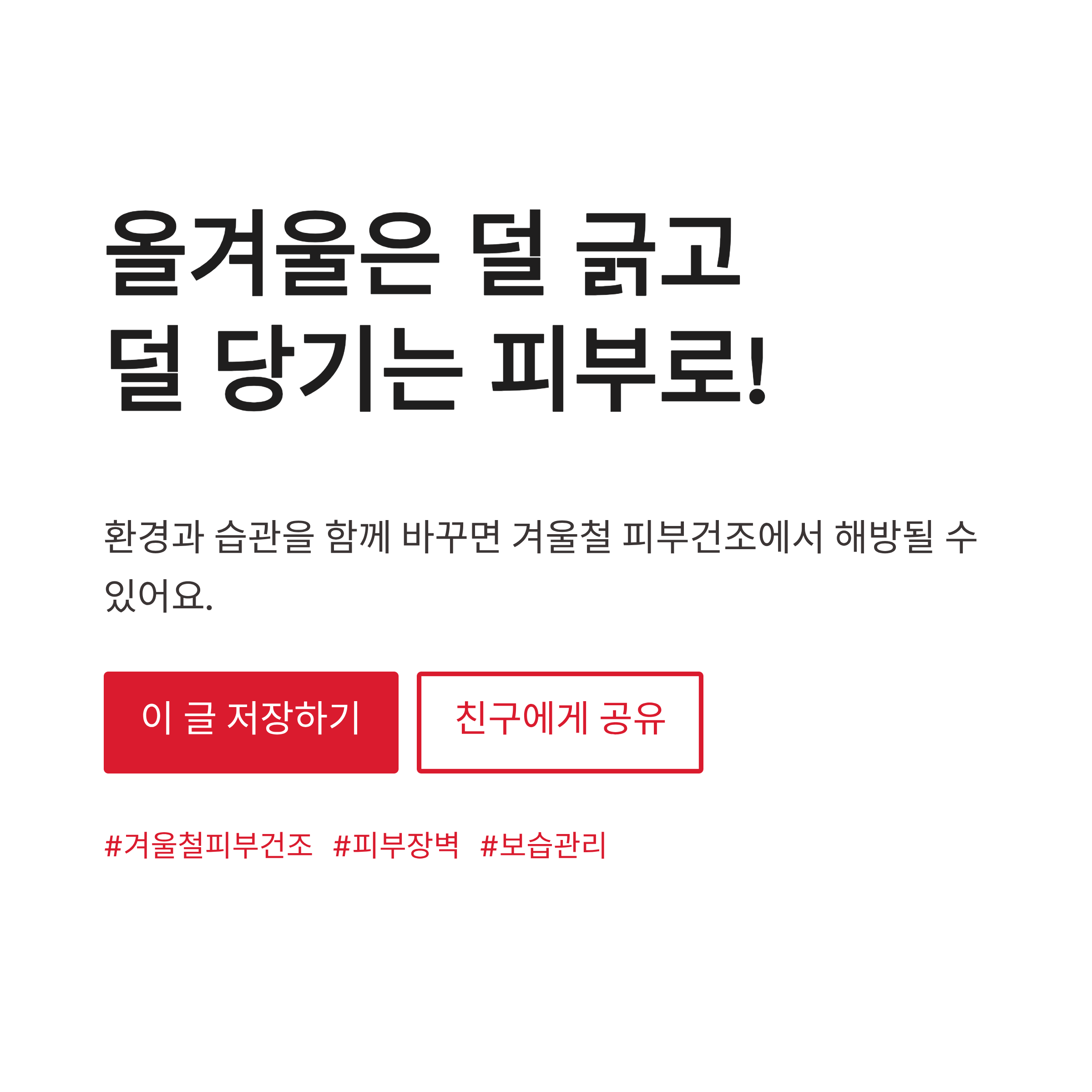 #겨울철피부건조 #겨울피부관리 #피부가려움 #피부장벽 #보습관리 #겨울보습 #건조한피부 #겨울가습기 #세안습관 #피부각질 #피부당김 #민감피부 #겨울스킨케어 #피부건조증 #생활습관관리