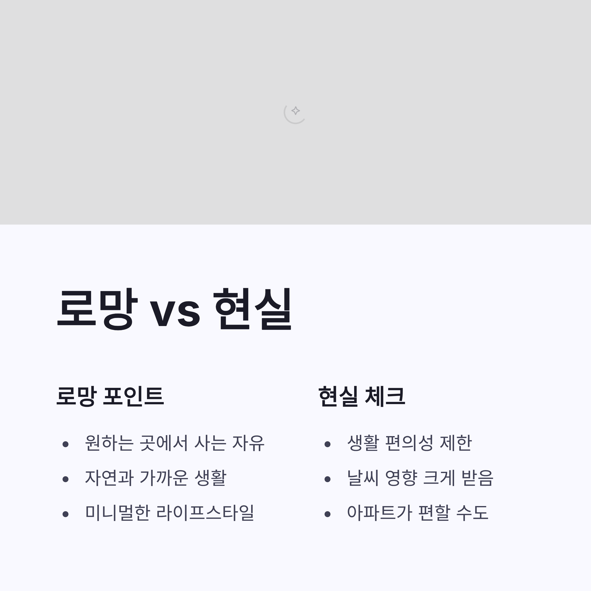 | 주요 포인트 | 주거 로망, 생활 동선, 현실 불편함 |