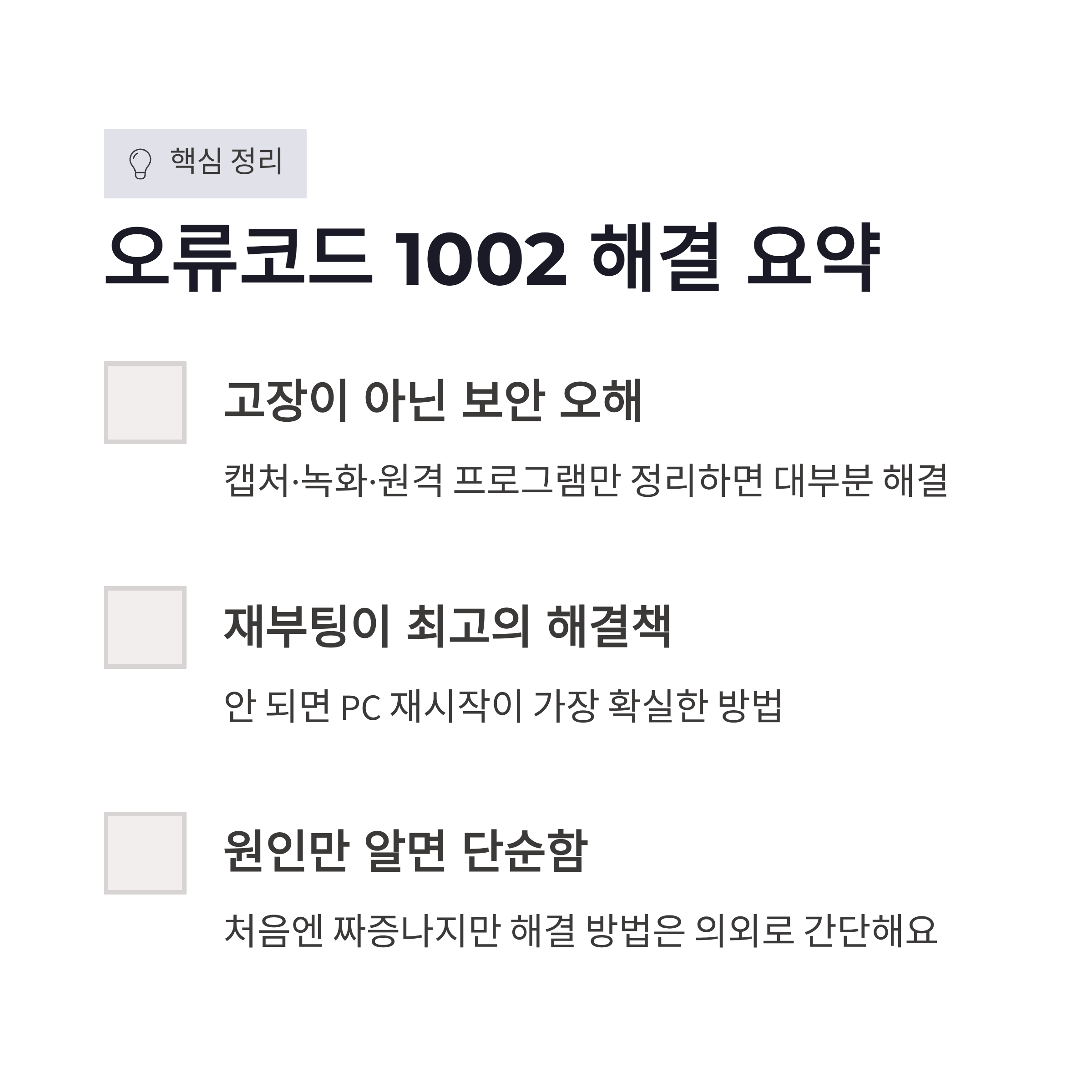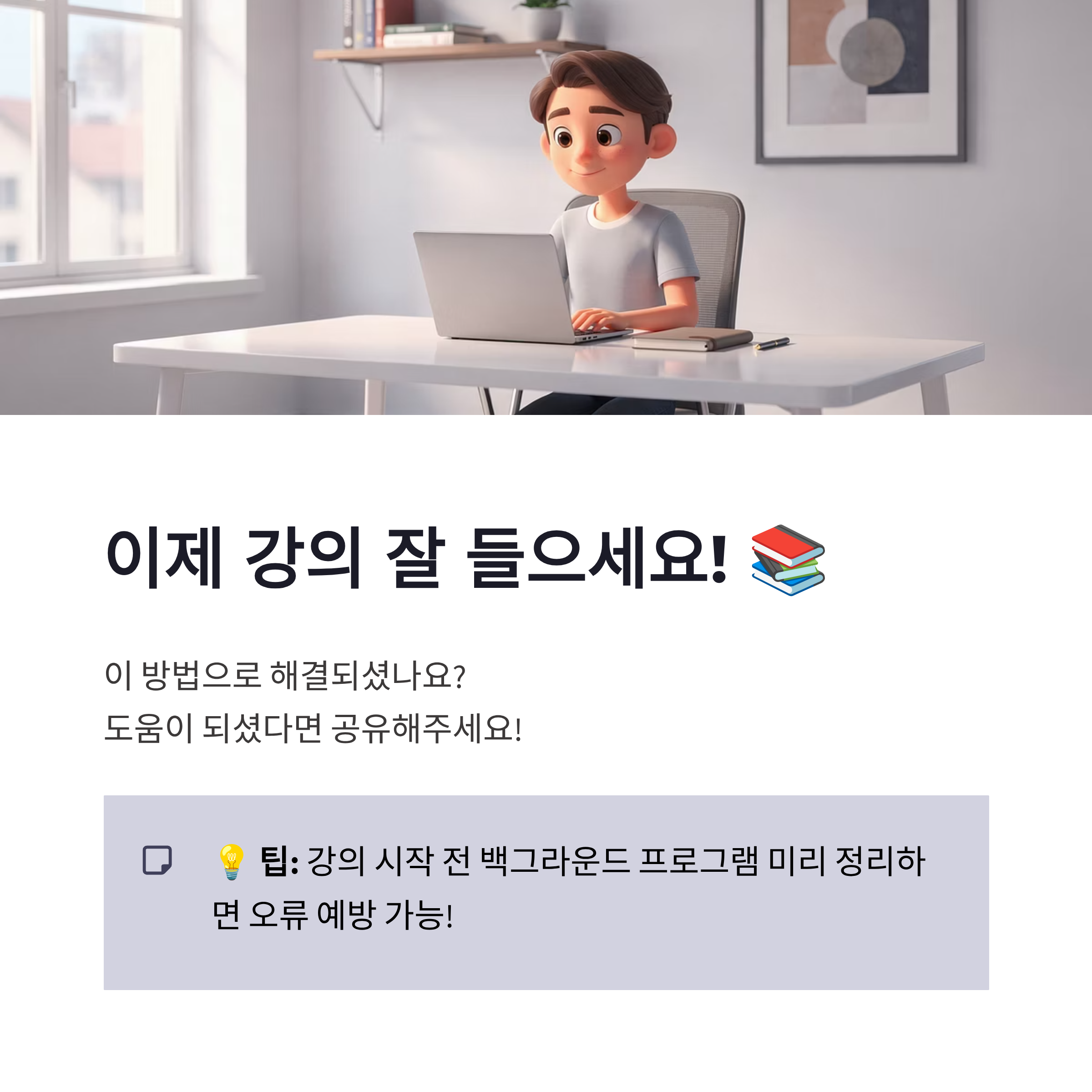 정리하면 메가스터디 오류코드 1002는 고장이라기보다 보안 오해에 가까웠어요. 캡처·녹화·원격 관련 프로그램만 정리해도 대부분 해결됐고, 안 되면 재부팅이 진짜 답이었습니다. 처음엔 짜증나지만 원인만 알면 생각보다 단순했어요. 저처럼 강의 밀려 있는데 이거 떠서 멘붕 오신 분들… 이 글 보고 바로 해결되셨으면 좋겠네요 ㅎㅎ 다음엔 또 뭐로 멈출지 모르겠지만, 일단 오늘은 강의 잘 들읍시다!