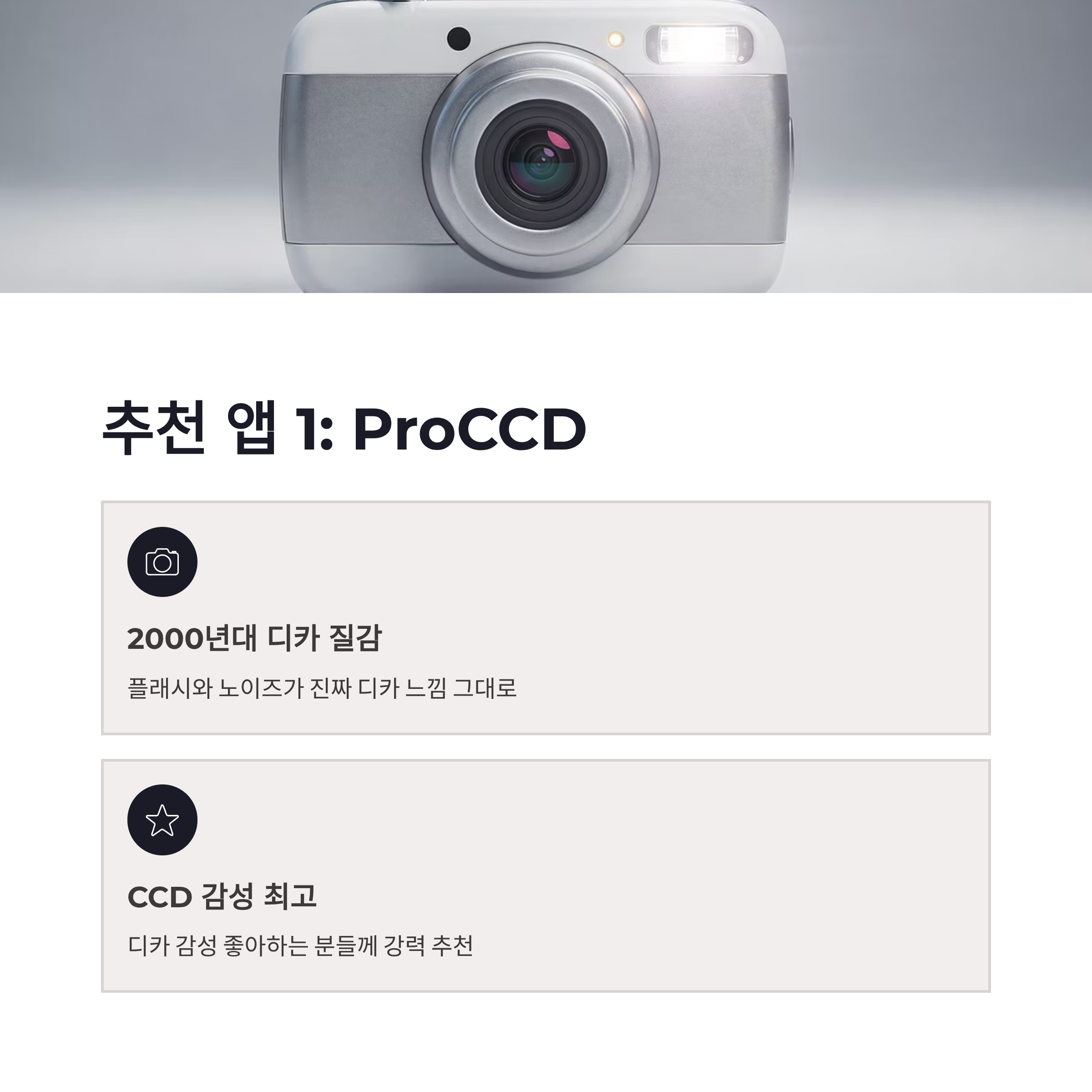 | ProCCD | 2000년대 디카 질감 | 플래시·노이즈가 진짜 디카 느낌 |