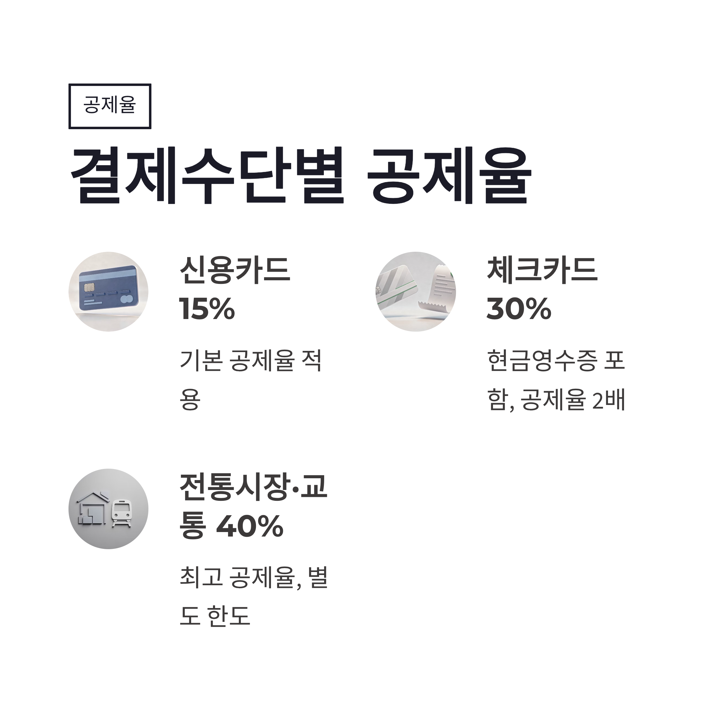 | 전통시장·대중교통 | 40% | 별도 추가 한도 있음 |