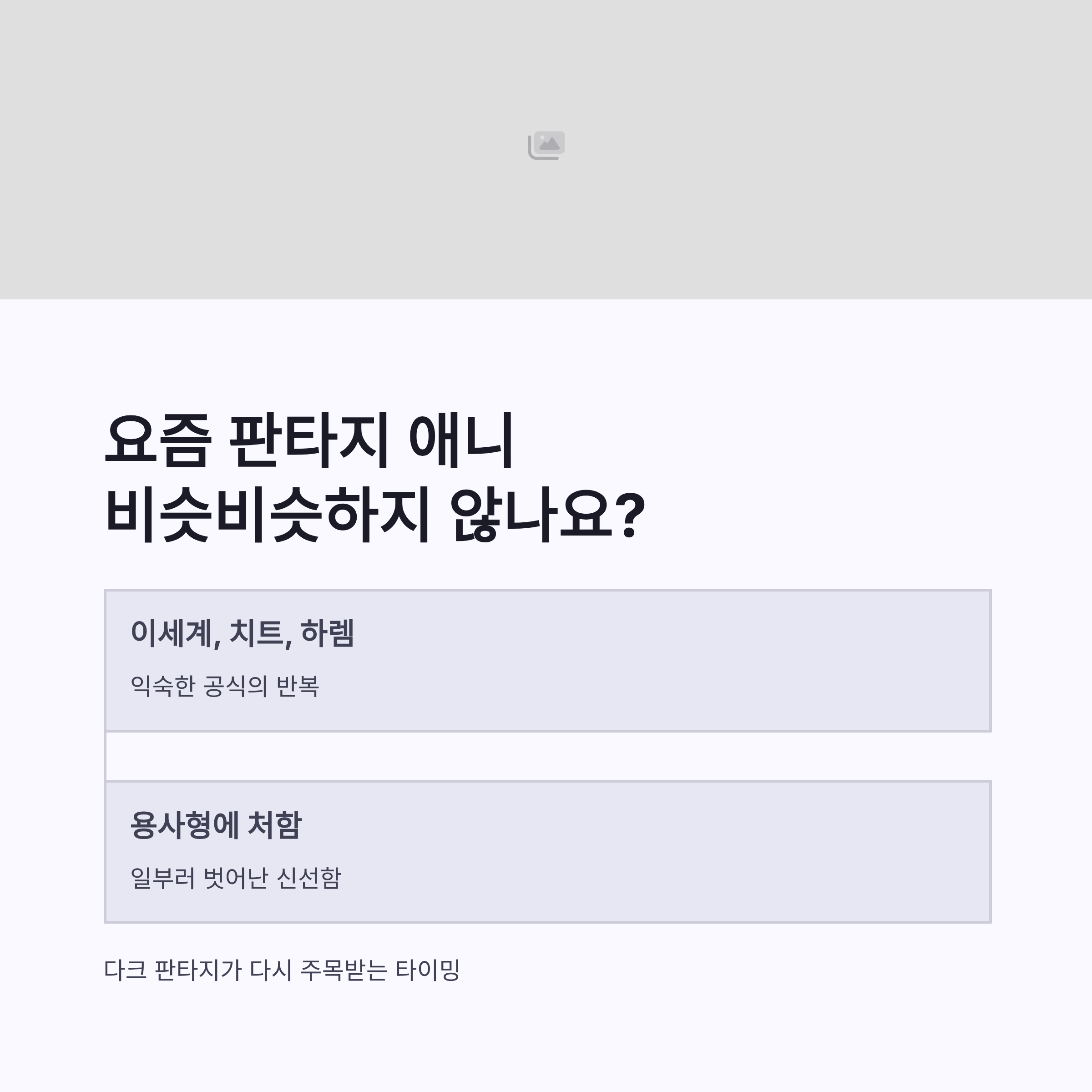 그래도 요즘엔 이런 다크 판타지 쪽이 다시 주목받는 흐름이라, 타이밍은 꽤 좋은 편 같더라구요. 개인적으로는 OST랑 연출만 잘 뽑히면 입소문 탈 가능성도 있다고 봤어요.