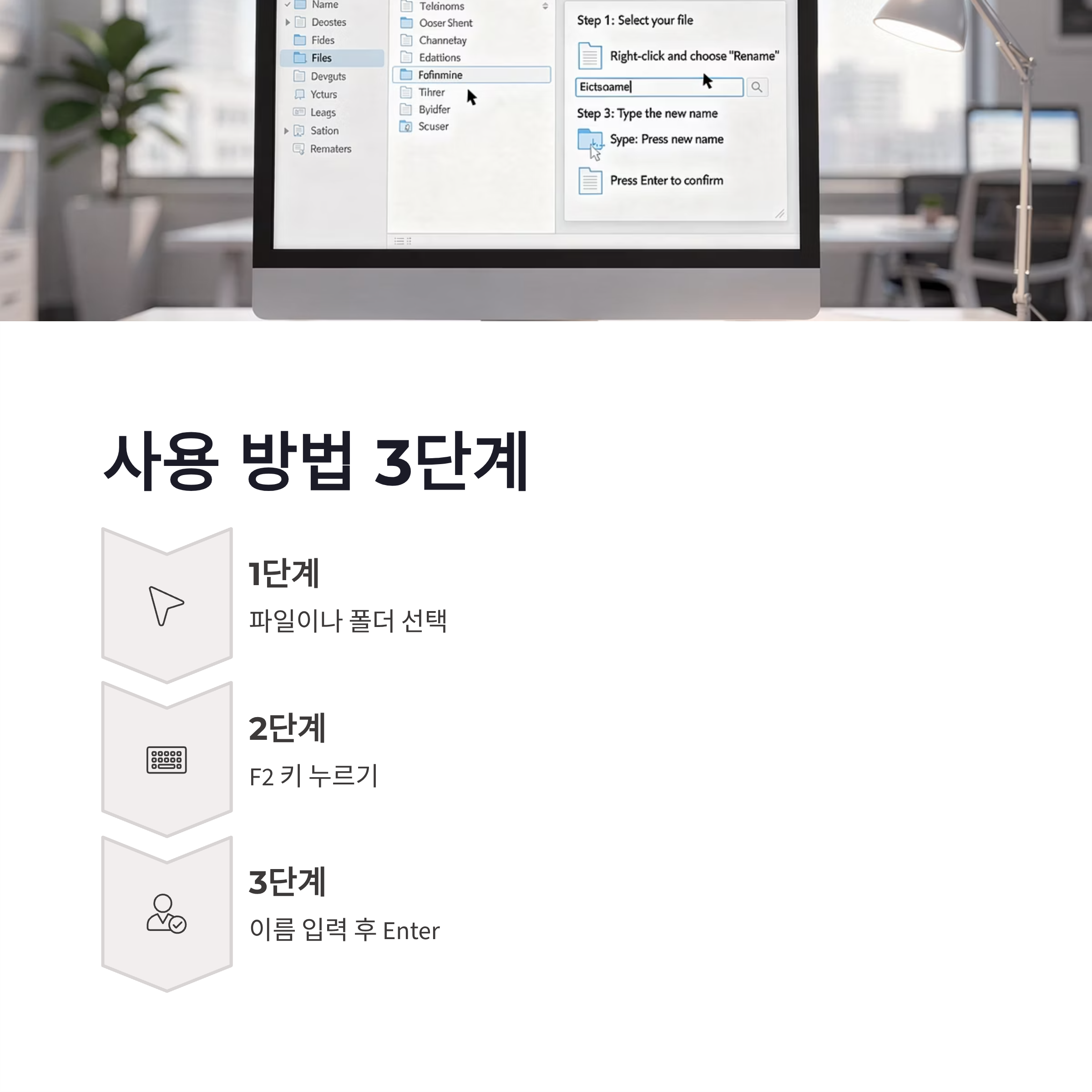 결론부터 말하면 답은 하나입니다. F2 키 이게 끝이에요. 너무 허무하죠? ㅎㅎ 파일이나 폴더를 한 번 클릭해서 선택한 다음 F2 누르면 바로 이름 수정 상태로 바뀝니다. 마우스 클릭 필요 없음!
