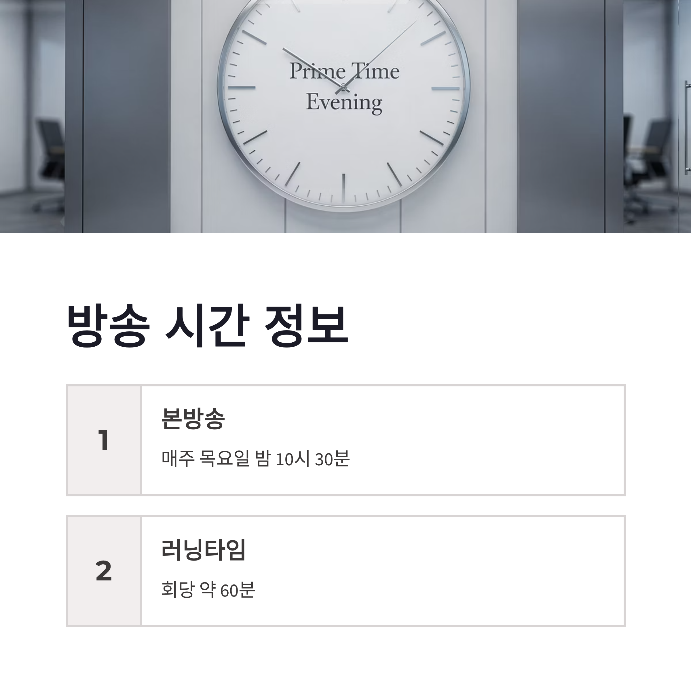 | 본방 | tvN 매주 목요일 22:30 |