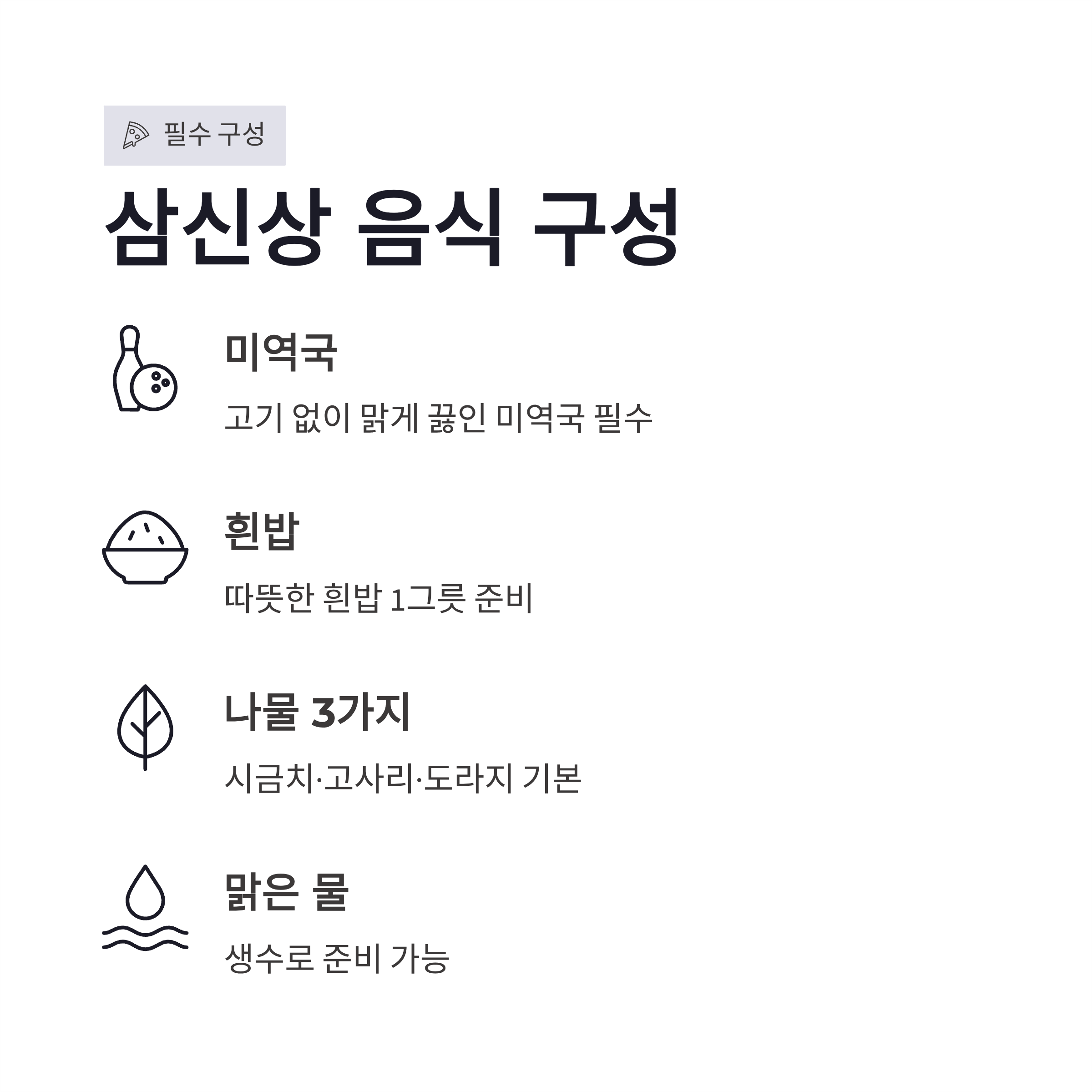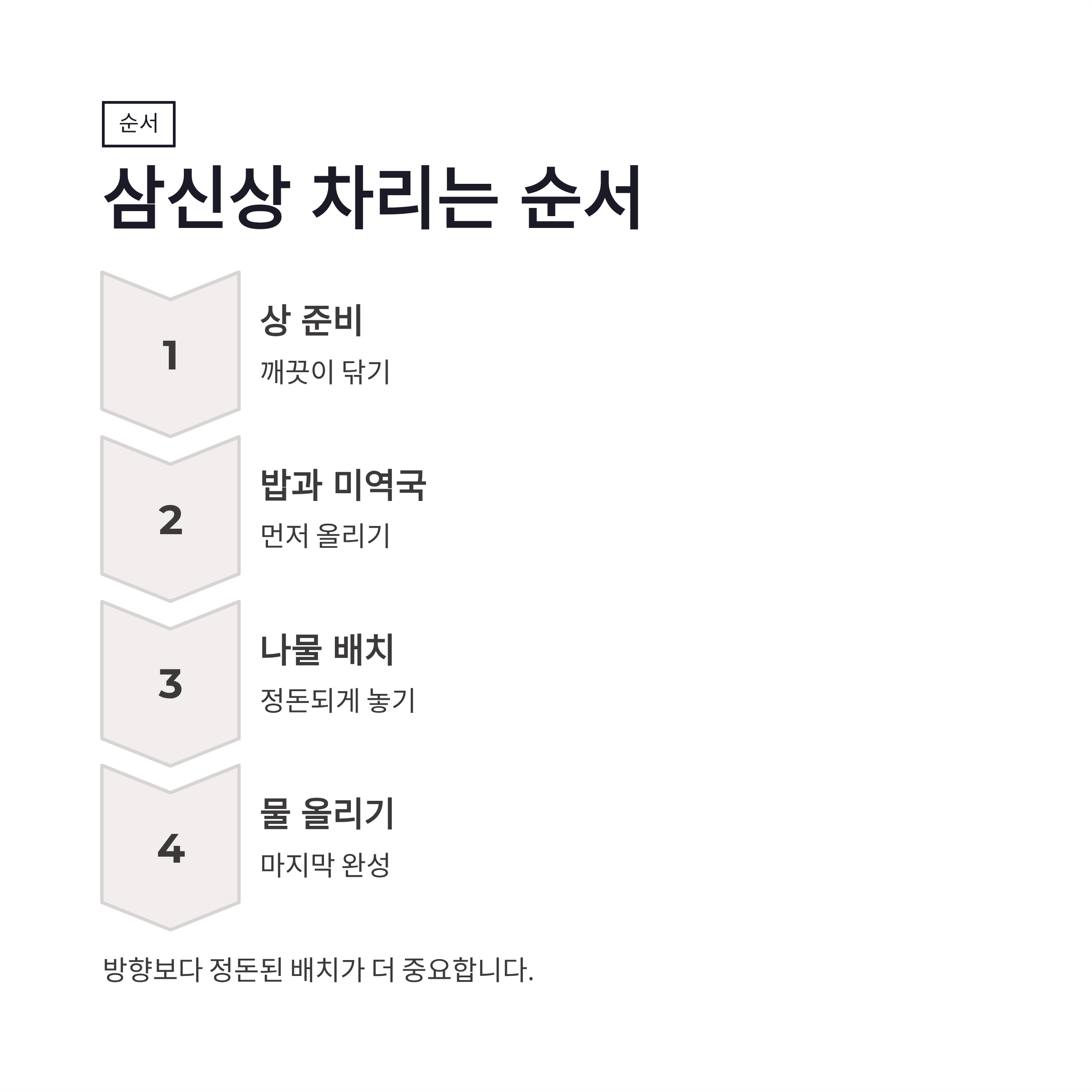 삼신상에서 가장 많이 나오는 질문이 “뭐까지 해야 하나요?” 인데요. 실제로 해보니까 구성은 단순한 편이었어요. 기본만 지켜도 충분하더라구요.