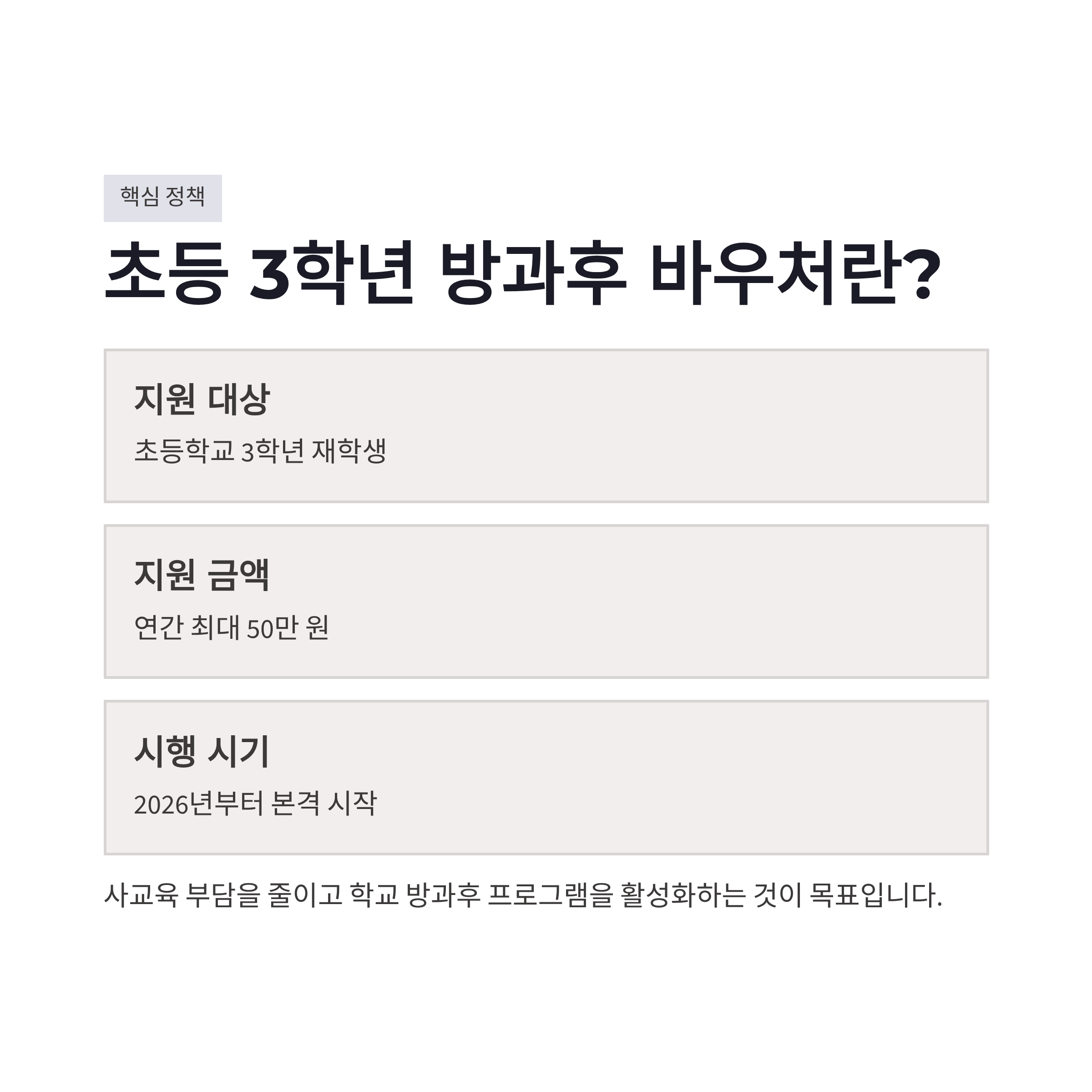 #초등3학년방과후바우처 #초등방과후 #2026교육정책 #초등돌봄정책 #방과후학교 #학부모정보 #사교육부담완화 #교육지원제도 #초등학교생활 #자녀교육 #교육이슈정리 #학부모공감 #초등정책 #교육복지 #학교방과후