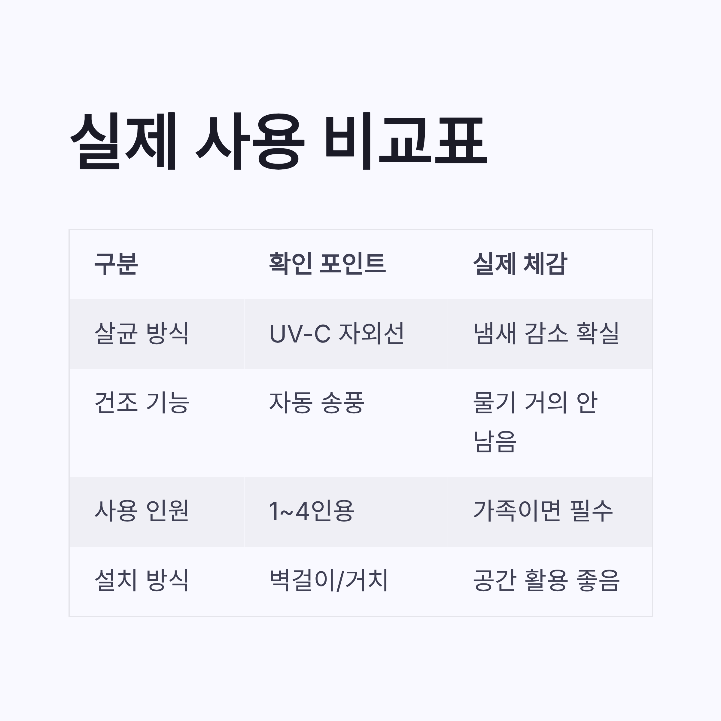 | 살균 방식 | UV-C 자외선 | 냄새 감소 확실 |