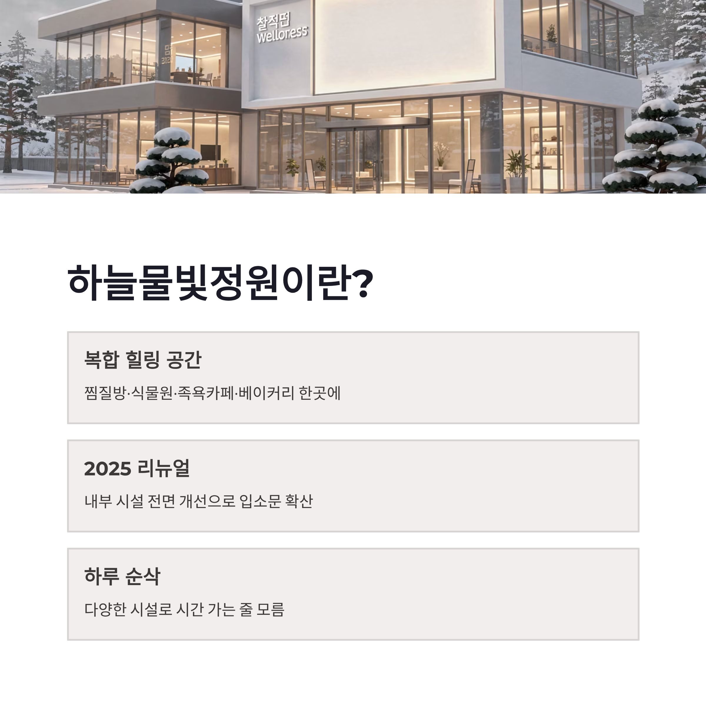겨울만 되면 이상하게 몸이 먼저 알아서 따뜻한 곳을 찾게 되더라구요. 그래서 이번에 다녀온 곳이 바로 하늘물빛정원이에요. 충남 금산에 있는 이곳은 찜질방 하나만 있는 게 아니라, 참숯가마·식물원·족욕카페·베이커리까지 한 번에 즐길 수 있는 복합 힐링 공간이라 하루가 순삭됩니다. 특히 하늘물빛정원은 2025년 리뉴얼 이후로 내부가 확 달라져서, 요즘 다시 입소문 제대로 타고 있더라구요.