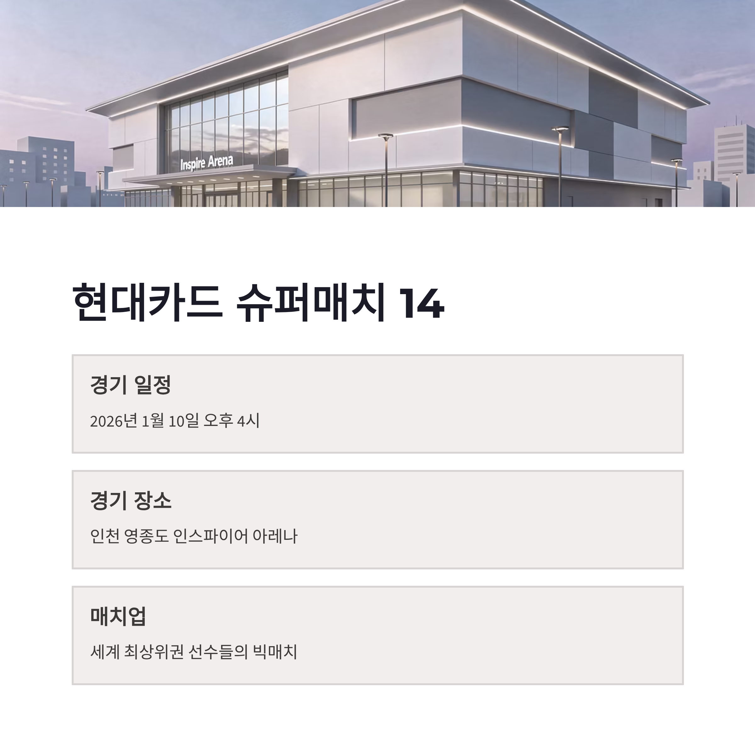드디어 현대카드 슈퍼매치 14 중계 날짜가 다가왔구요. 테니스 좋아하는 분들이라면 이번 매치는 진짜 그냥 넘어가기 힘든 조합입니다. 야닉 시너랑 카를로스 알카라스가 한국에서 맞붙는다니, 이게 말이 되나 싶더라구요 ㅎㅎ 2026년 1월 10일, 장소는 인천 영종도 인스파이어 아레나이고요. 메인 매치는 오후 4시 시작 예정입니다. 개인적으로 이 시간대 너무 좋아요. 낮에 일정 정리하고 딱 보기 좋더라구요. 현대카드 슈퍼매치 14 중계는 현장 못 가는 분들도 충분히 즐길 수 있게 준비돼 있어서 더 반갑습니다. 이번 경기는 단순 이벤트 매치가 아니라, 세계 랭킹 최상위권 선수들의 실제 컨디션을 볼 수 있는 무대라서 더 의미가 크더라구요. 진짜 빅매치, 이 표현이 딱 맞는 날입니다.