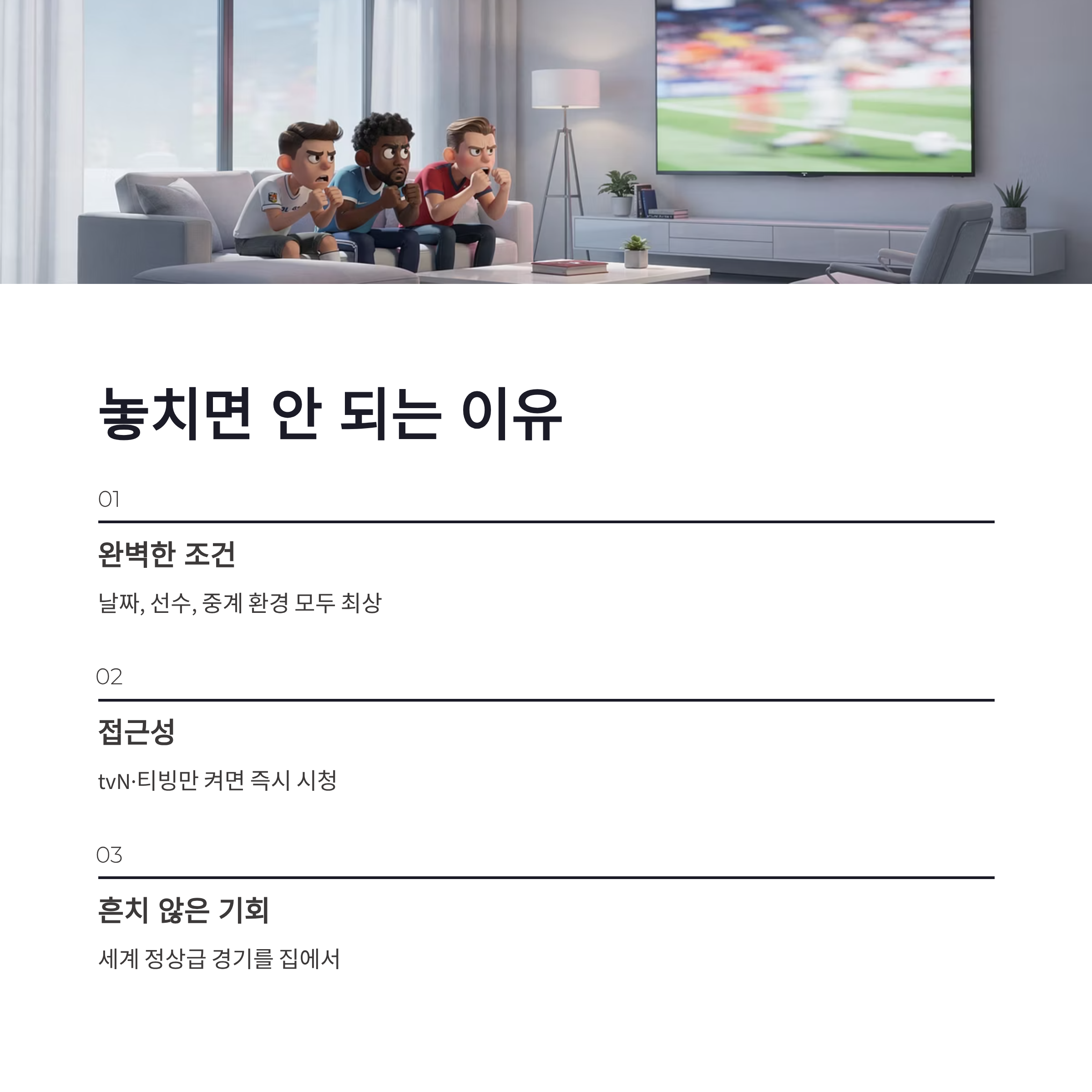 이번 현대카드 슈퍼매치 14 중계는 TV랑 모바일 둘 다 가능해서 접근성이 좋아요. 저는 개인적으로 티빙으로 볼 예정인데, 이동 중에도 이어서 볼 수 있어서 편하더라구요.
