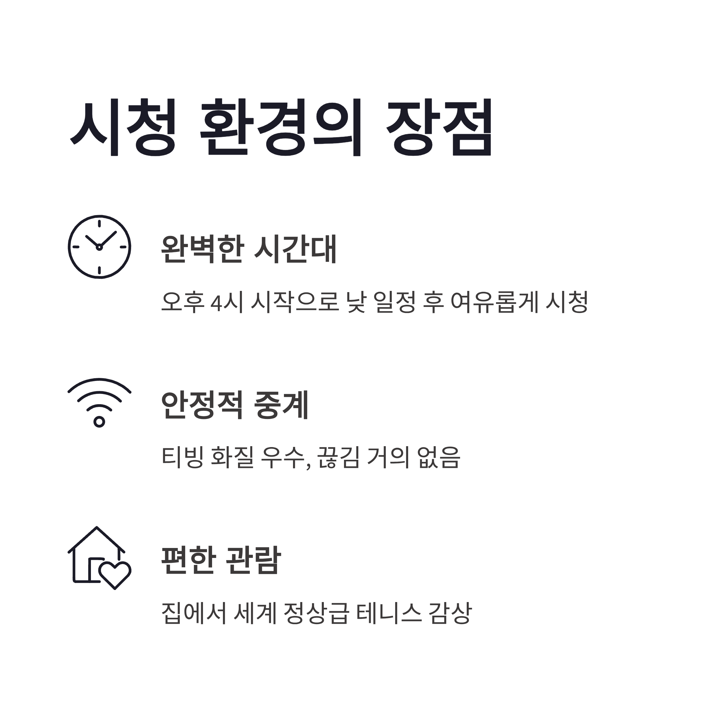 실제로 작년 슈퍼매치 때 티빙으로 봤는데, 화질도 안정적이고 끊김도 거의 없었어요. 현대카드 슈퍼매치 14 중계는 메인 매치 중심으로 구성돼 있어서 군더더기 없이 집중하기 좋았구요. 연관 키워드로 많이 찾는 게 *테니스 중계 보는법, 해외선수 방한 경기* 이런 쪽이던데, 이번엔 딱 정리돼 있어서 헷갈릴 게 없었습니다.