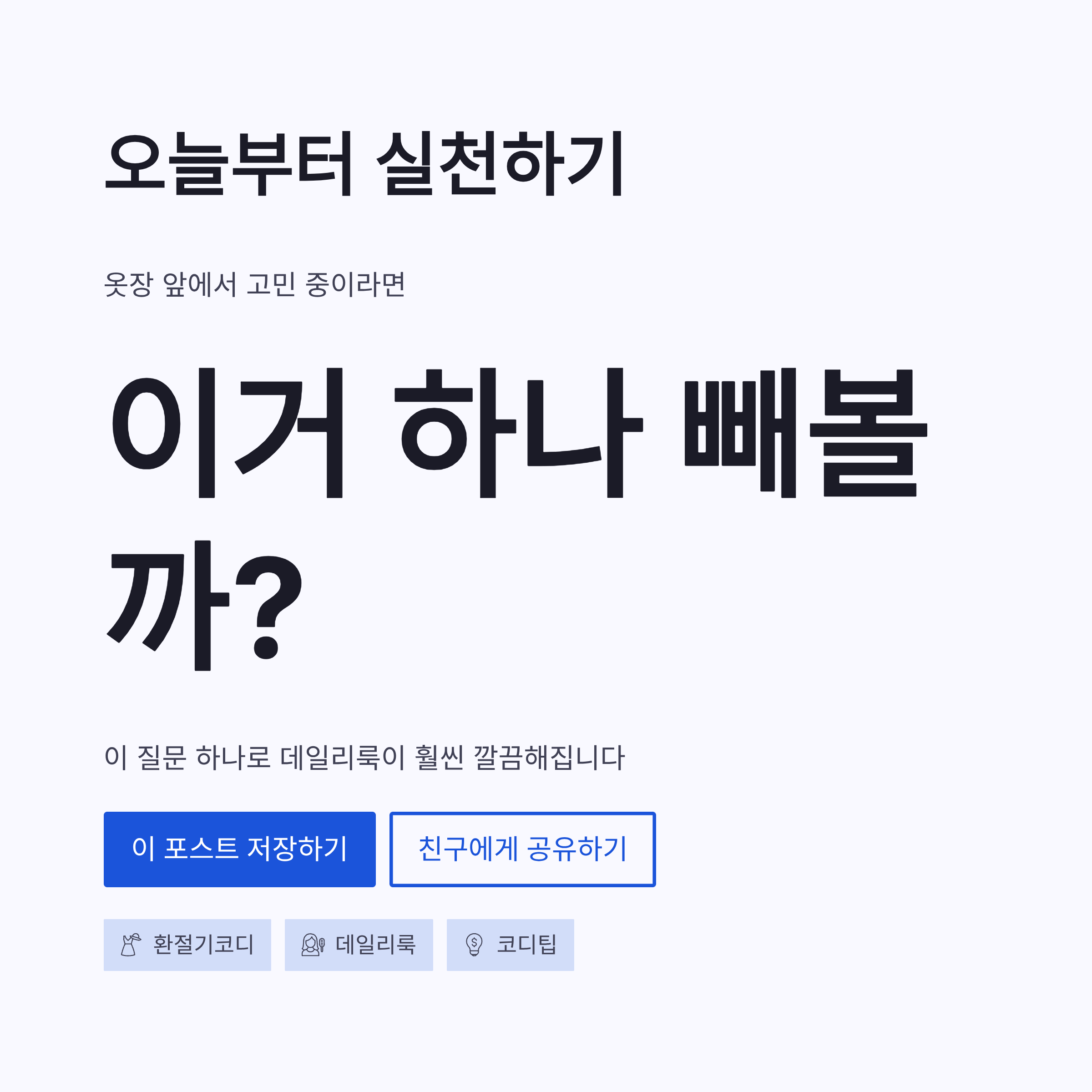 결국 환절기 코디 실수는 욕심에서 나오더라구요. 이것도 입고 싶고 저것도 넣고 싶고… 근데 진짜 예쁜 환절기 코디는 하나만 강조하고 나머지는 비워두는 스타일였어요. 사이즈 하나, 컬러 하나, 레이어드 하나만 정리해도 데일리룩이 훨씬 깔끔해집니다. 오늘 옷장 앞에서 또 고민 중이라면, “이거 하나 빼볼까?” 이렇게 생각해보는 거 어떠쥬? ㅎㅎ