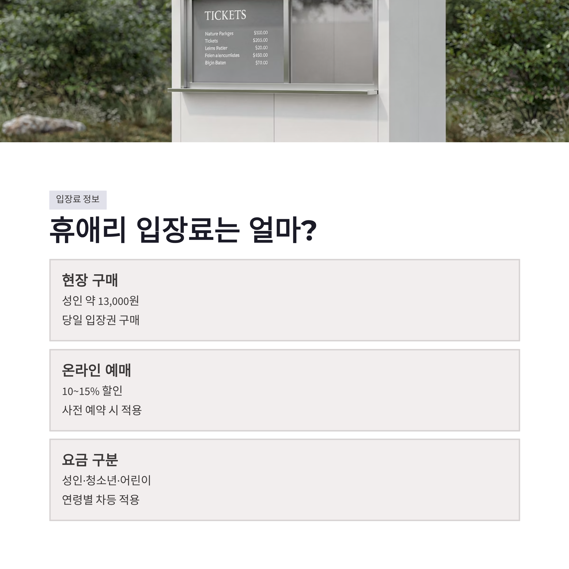 제주 여행 준비하다 보면 휴애리 자연휴양림은 한 번쯤 꼭 검색하게 되더라구요. 저도 그랬는데요, 막상 가려고 보니 입장료를 현장 구매할지, 미리 예매할지 살짝 고민이 되더라구요. 결론부터 말하면, 휴애리 자연휴양림 입장료는 예매 방식에 따라 체감이 조금 다릅니다. 2026년 기준으로 성인, 청소년, 어린이 요금이 구분돼 있고, 온라인 예매 시 소폭 할인이 적용되는 경우가 많았어요. 성인 기준 현장 구매는 약 13,000원 선, 사전 예매는 이벤트에 따라 10~15% 정도 차이 나기도 했구요. 저는 미리 예매했는데, 입구에서 줄 덜 서는 게 제일 좋았슴다 ㅎㅎ 휴애리 자연휴양림은 가족 단위 방문이 많아서 주말엔 대기 생기더라구요.