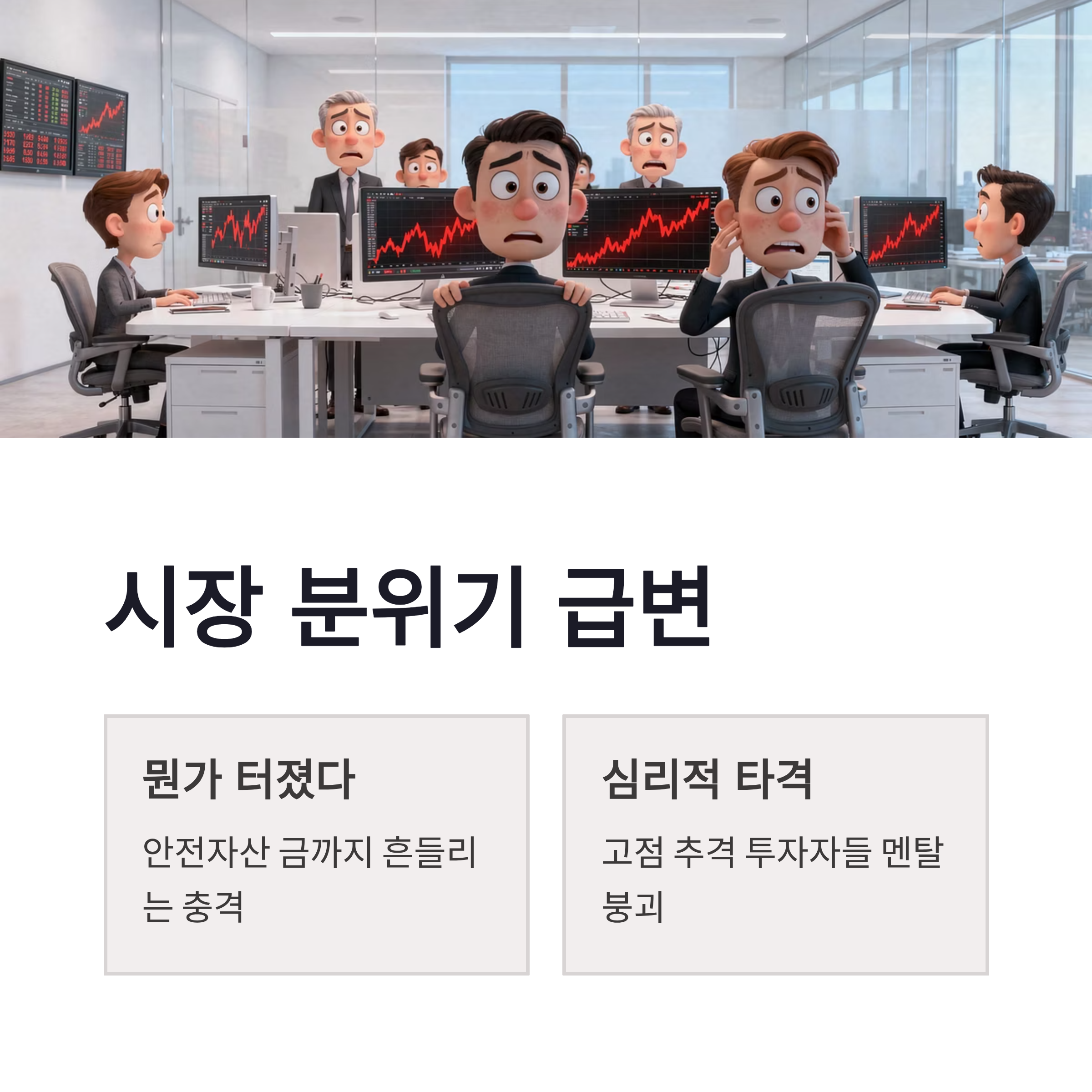 2026년 1월 30일, 진짜 깜짝 놀랐습니다. 전날까지만 해도 금 가격 급락은 상상도 못 했거든요. 금 현물 가격이 사상 최고가를 찍고 나서 하루 만에 9% 이상 빠지는 장면, 솔직히 보면서도 멍했구요. 은 가격은 더 충격이었죠. 무려 27% 넘는 하락이라니… 이건 단순 조정이라고 보기엔 너무 컸습니다. 그날 시장 분위기는 딱 하나였어요. “뭔가 터졌다”는 느낌. 안전자산이라고 믿던 금까지 이렇게 흔들리니, 심리적으로 더 크게 와닿더라구요. 개인적으로는 고점 추격 들어간 투자자들 멘탈이 가장 걱정됐습니다. 진짜로요. 금 가격 급락은 숫자보다 심리가 더 무서운 구간이거든요.