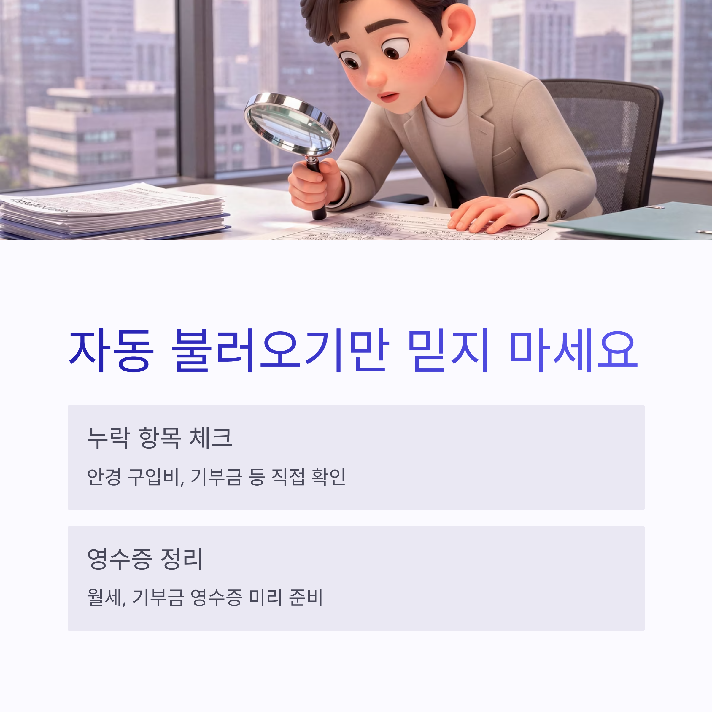 특히 2026 연말정산에서는 자동으로 불러오는 자료만 믿지 말고, 누락된 항목 직접 체크하는 게 핵심이었어요. 저는 작년에 안경 구입비 빠진 거 나중에 발견해서 아쉬웠거든요 ㅠㅠ