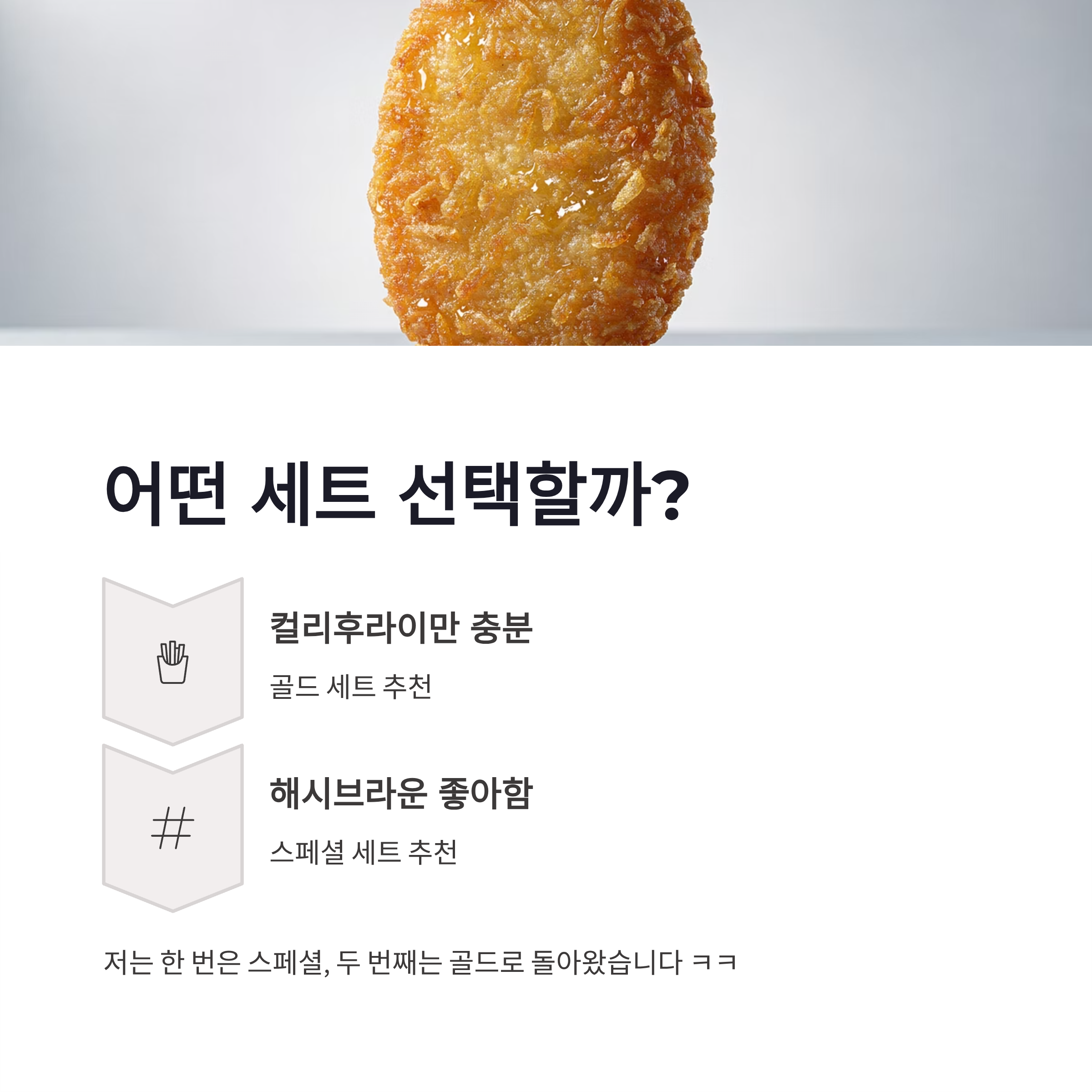 해시브라운 좋아하면 스페셜이 맞고, 컬리후라이만으로 충분하다면 골드가 더 낫더라구요. 저는 솔직히 한 번은 스페셜, 두 번째는 골드로 돌아왔습니다 ㅋㅋ 연관 키워드로는 행운버거 세트, 행운버거 가격, 컬리후라이 세트 이런 거 많이 찾게 되더라구요.