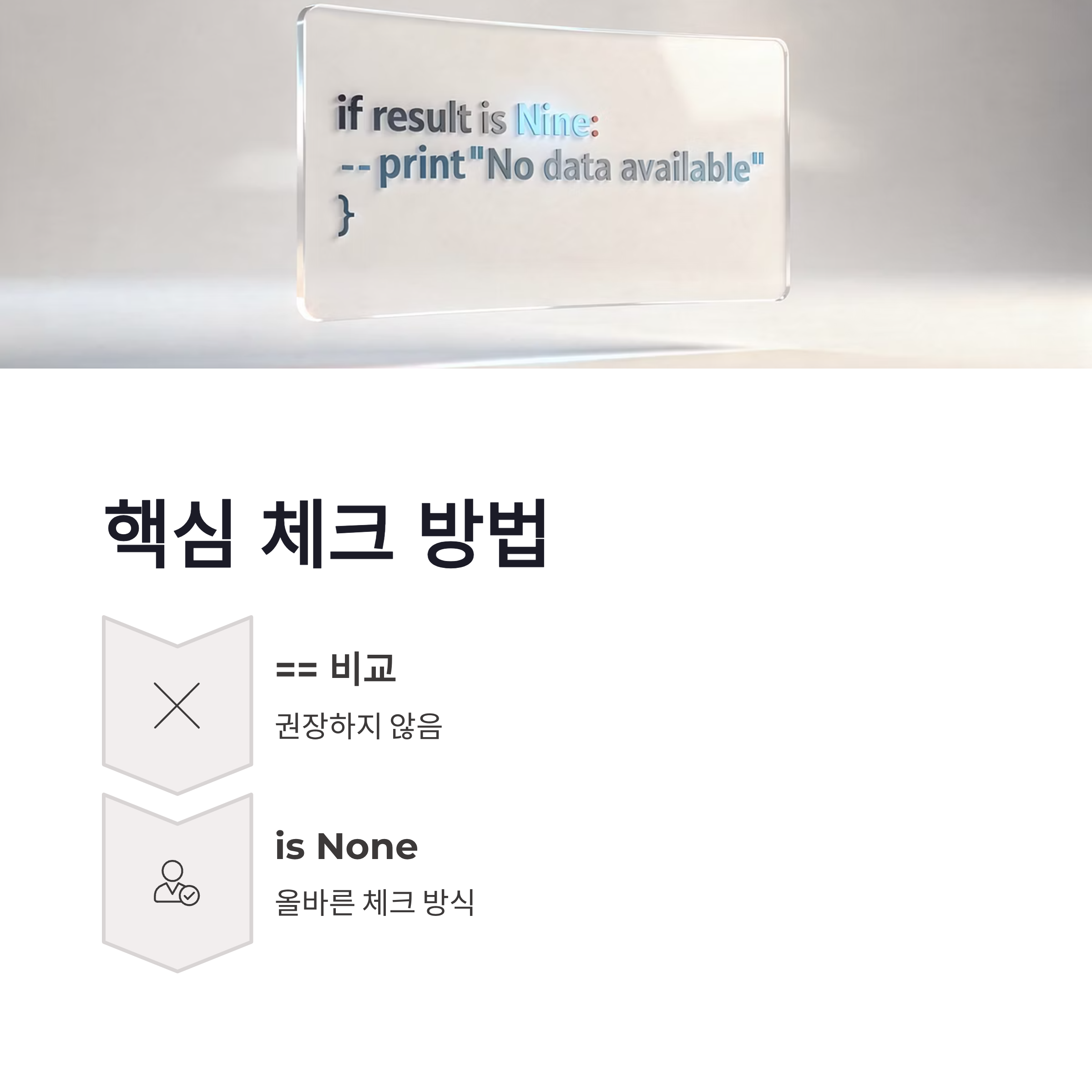 | DB 조회 | 값 없을 때 None | 오류 대신 상태 구분 |