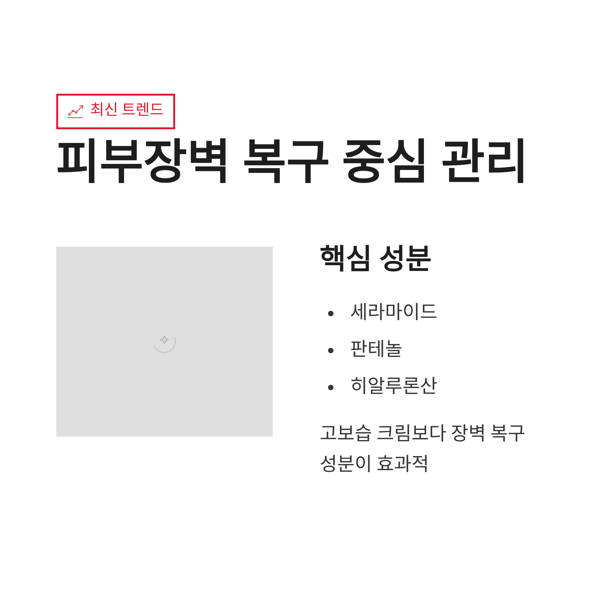 요즘은 고보습 크림만 쓰기보단 피부장벽 복구에 초점 맞춘 관리가 트렌드래요. 세라마이드, 판테놀 같은 성분 위주로요. 장점은 확실히 회복이 빠르다는 거! 단점이라면, 초반엔 답답하고 유분감이 부담될 수 있다는 점이었어요. 그래도 꾸준히 하니까 겨울철 피부건조 재발 빈도가 확 줄었습니다. 단기 해결보다 장기 관리가 답이더라구요.