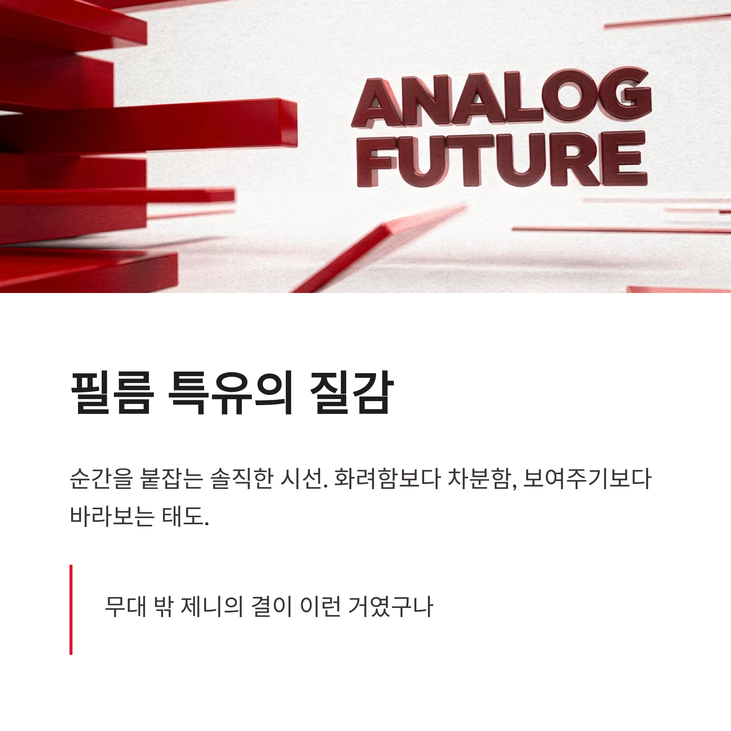 | 형식 | 개인 사진전 (필름 기반) |
