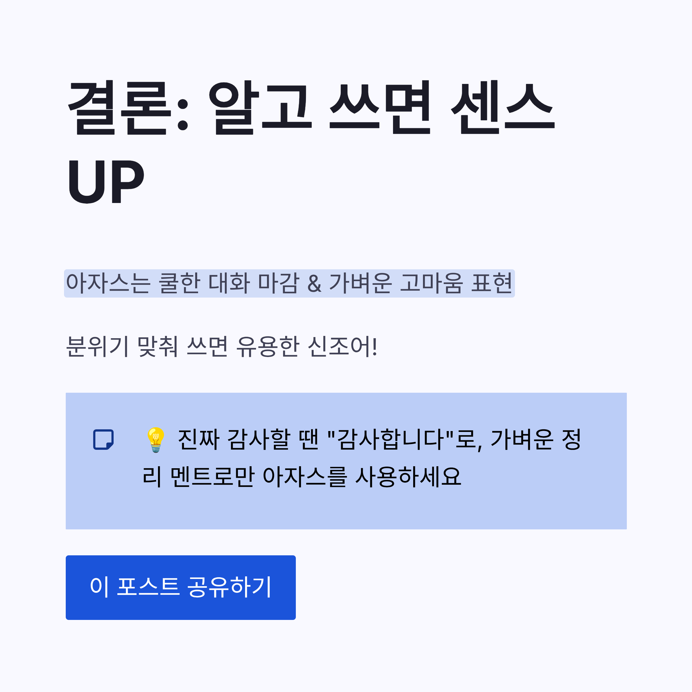 결론: 아자스 뜻 알고 쓰면, 센스도 올라가고 사고도 줄어듦