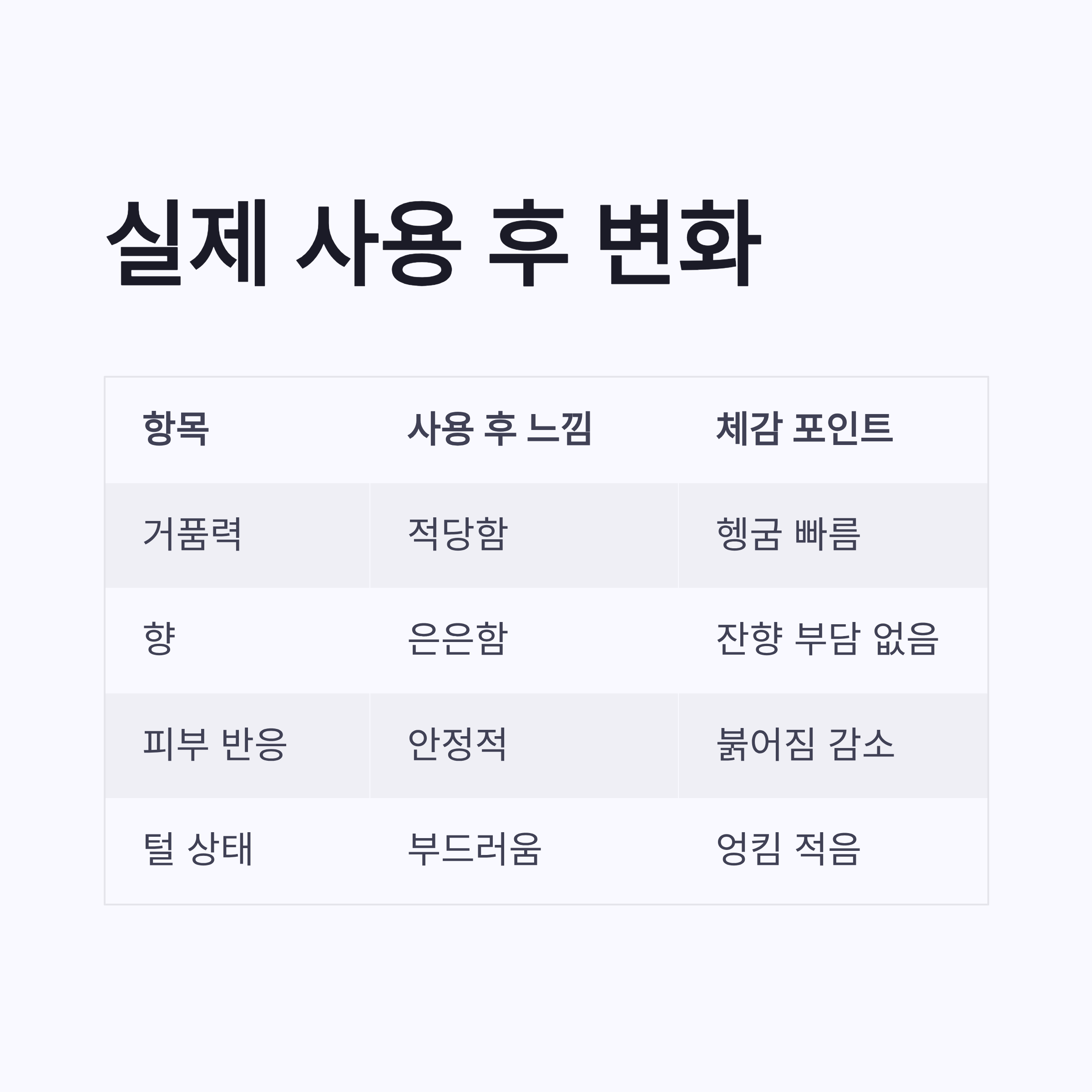 | 항목 | 사용 후 느낌 | 체감 포인트 |